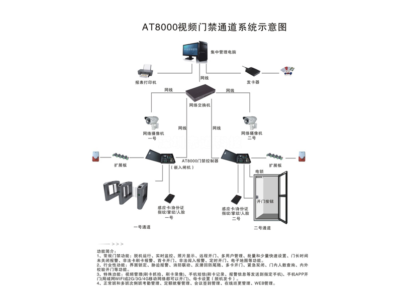 视频门禁考勤通道管理系统特点: